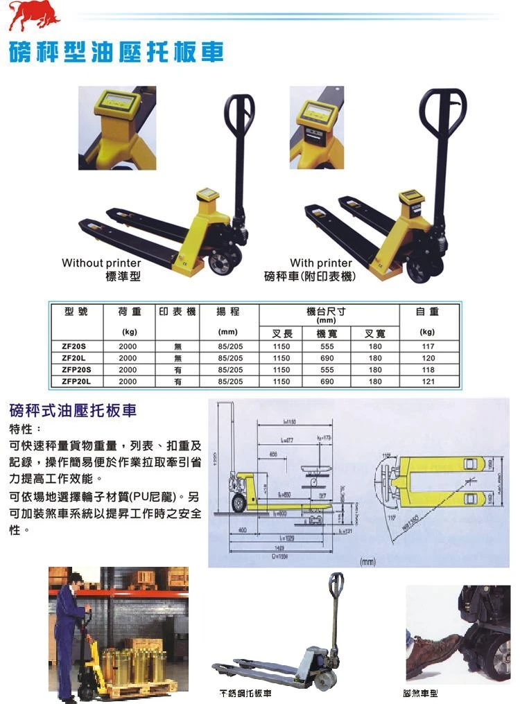 外型尺寸小、推行輕巧、升降自如、轉彎方便、計量精確等優點。